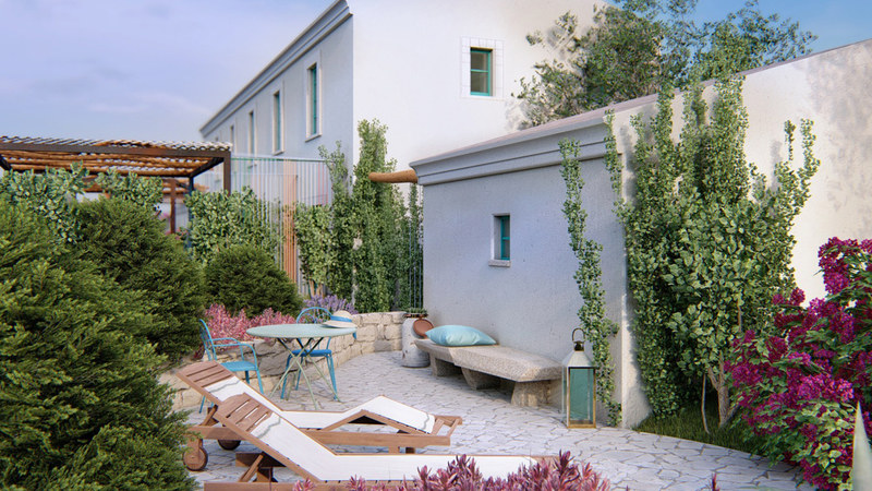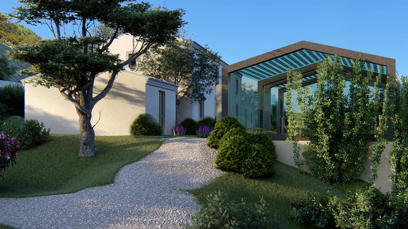 La semplicità delle forme del fabbricato esistente, uno stazzo risalente al 1900, costituito da cellule elementari affiancate lungo l’asse maggiore, la presenza di aperture sulle due estremità assiali della sagoma esistente, e la morfologia del terreno con le curve di livello parallele al fabbricato, hanno suggerito il tema del raggruppamento dei volumi seguendo lo schema della giustapposizione laterale.